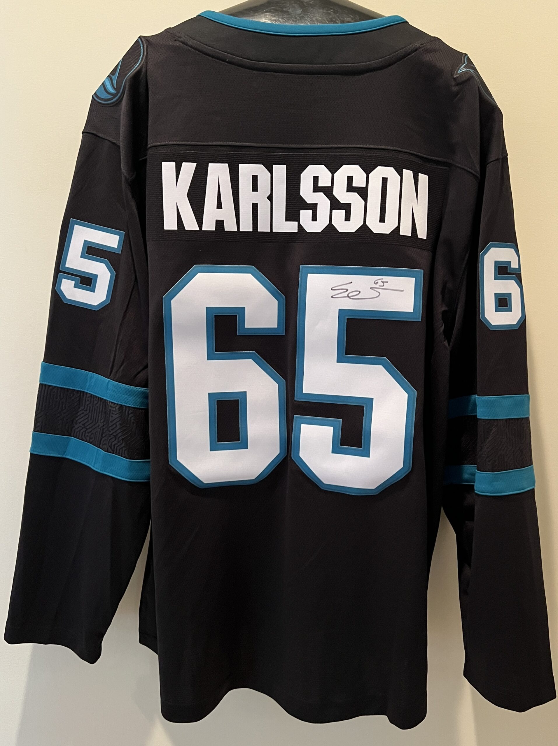 Keith Primeau had this jersey signed for StopConcussions Foundation. It is an authentic Fanatic Pro Black Breakaway Alternative Jersey with fighting strap. Karlsson is the rare player who can change a game every time he steps onto the ice. The San Jose Sharks, who acquired him in a trade with the Ottawa Senators on Sept. 13, 2018, are counting on him to be that kind of game-changer.
